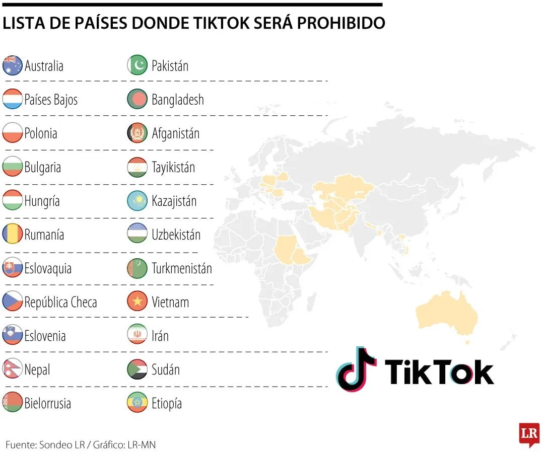 Según un informe de The New York Times, TikTok está en la lista negra de al menos 20 países, entre ellos Pakistán, Irán, Vietnam y Bielorrusia. Aunque en algunos casos la prohibición ha sido temporal, en otros se trata de un veto definitivo.
